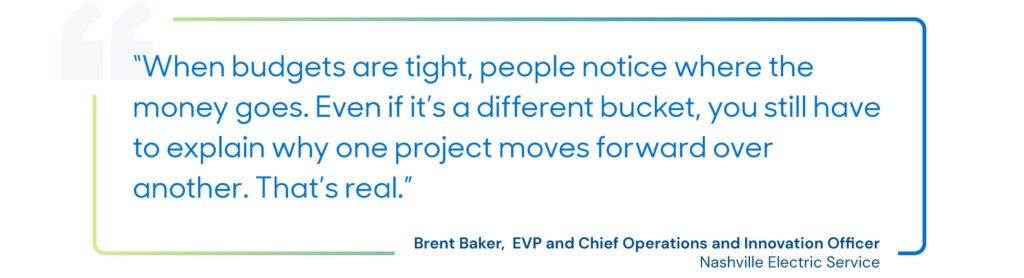 Brent Baker, EVP and Chief Operations and Innovation Officer for Nashville Electric Service, notes, “When budgets are tight, people notice where the money goes. Even if it’s a different bucket, you still have to explain why one project moves forward over another. That’s real.”