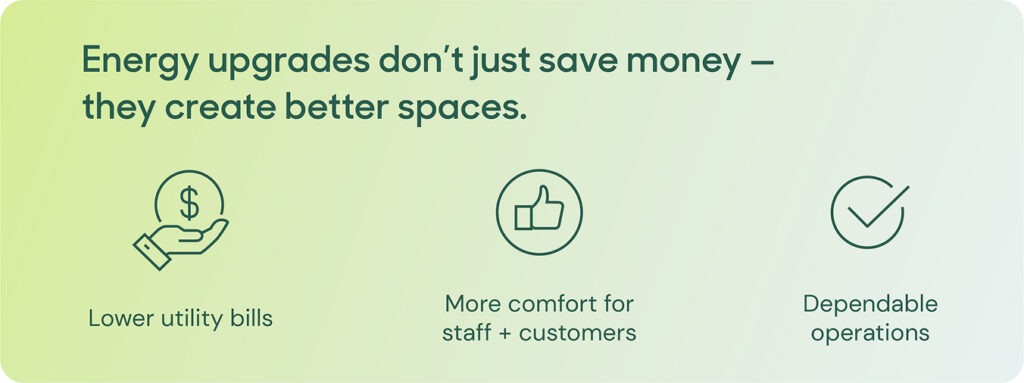If you’re dealing with rising energy bills, inconsistent temperatures or outdated lighting, you’re not alone. Many tenants in leased commercial spaces face these issues—and feel stuck because they don’t own the building. But energy upgrades can dramatically improve your day-to-day experience. Efficient lighting, smart thermostats, HVAC tune-ups and insulation improvements can all make your space more comfortable and productive, while lowering operating costs at the same time.