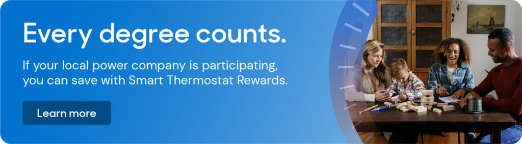 If you don’t have a smart thermostat yet, and you’re thinking about purchasing one, check to see if your local power company is participating in our Smart Thermostat Rewards program.