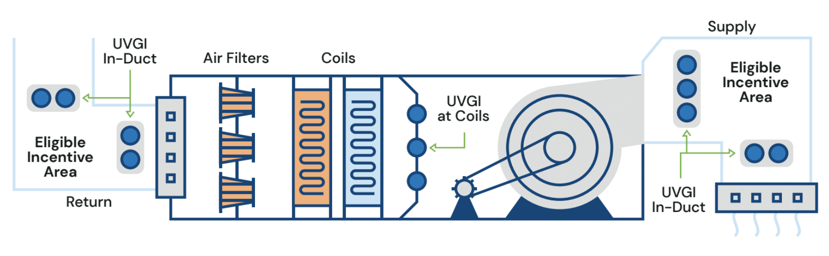 TVA’s incentive offering is limited to in-duct UVGI. The following are not eligible for this incentive at this time: