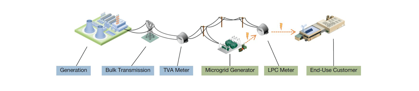 Front-of-meter placement means the generator is your safeguard first. It automatically powers your business during an outage, while also staying connected to TVA’s system to support the grid when needed.